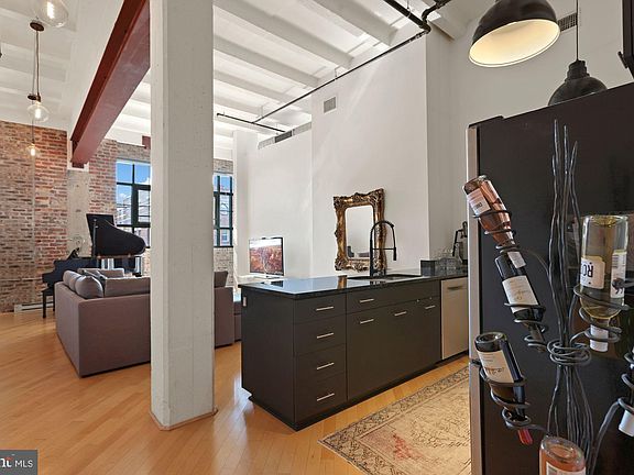 True loft conversion in a 1920s industrial building. Unit 303 has 2 beds, 2 baths, and assigned garage parking. Located on the original top floor, the unit is bright and airy with dramatic 14 ft ceilings, the tallest in the building. An eclectic space you can make your own. The western exposure, and SW views, receives tons of natural light, and the layout provides nice separation between bedrooms, each comfortably fitting a king size bed with side tables. Lots of storage including a primary walk-in closet and kitchen pantry/storage that takes advantage of the full ceiling height with customizable Elfa closet systems. The roof deck is equipped with a gas grill, lounging chairs, and views of the city. The unit is very quiet, yet in the action, with Harris Teeter located across the street, and many restaurants, entertainment options, and parks nearby.