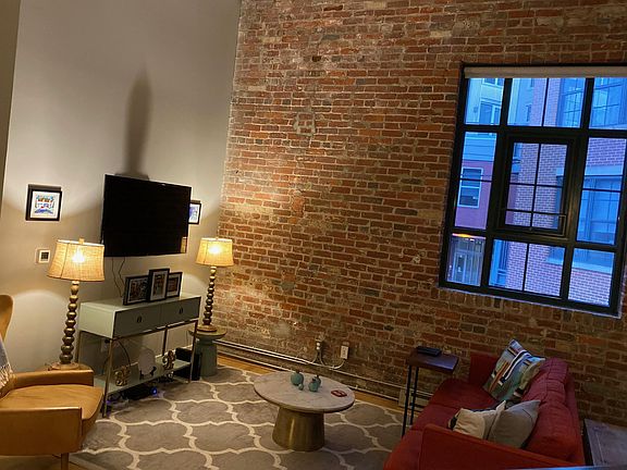 A beautiful, modern, loft-style real 2 bedroom/2 bath apartment in a boutique building in the middle of everything in Adam's Morgan. 1100 square feet, 14' ceilings, exposed brick, and garage parking. Apartment includes all modern amenities, is across the street from a super market, and minutes by foot from the heart of Adam's Morgan. Partially furnished with kitchen bar and large bookshelves. Close to several major bus lines, and a 15 minute walk to multiple metro stops. Available for move in on July 1. Move in possible earlier, if necessary. Owner is responsible for electric and cable/internet. Pets allowed with some conditions - please inquire about pets.