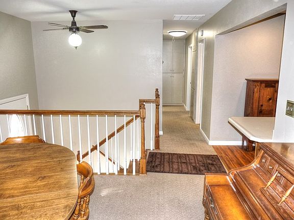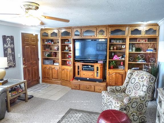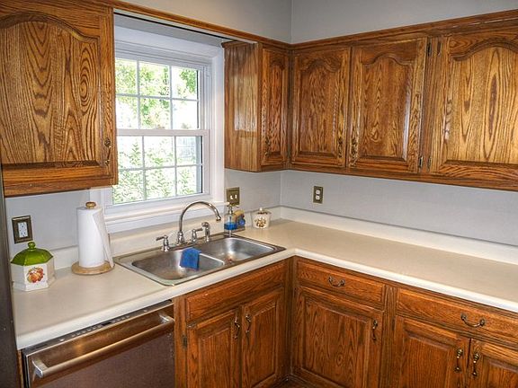 Great room features custom built-in entertainment center, custom built cabinets in kitchen, spacious master bedroom with large walk-in closet, all kitchen appliances are included, formal living room, sun room just off the kitchen with private deck. Oversized two car detached garage features 2nd level storage space. Hardwood under carpet on main level. Large fenced in yard.