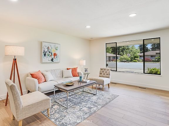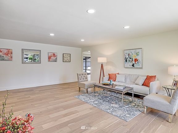 Fabulous, flexible floor plan delivers plenty of style, functionality and over $129,000 in recent upgrades. One level design offers apprx 1830 sq ft, fresh paint inside and out, lovely new hardwood floors in most rooms, all new light fixtures, newly remodeled baths and kitchen which enjoys new SS applcs -- and no stairs! Light-filled living spaces, floor-to-ceiling brick frplc, well-equipped eat-in kitchen features plentiful cbntry, workspace, opens to family rm. Covered elevated deck for year 'round outdoor living; outbldg; extended driveway prkg. Quiet cul-de-sac setting, easy access to I-405, Eastside, Seattle, Gene Coulon Park, Boeing, Renton Landing and amenities galore! A rare find and a smart choice for the discerning buyer.
