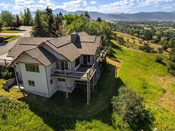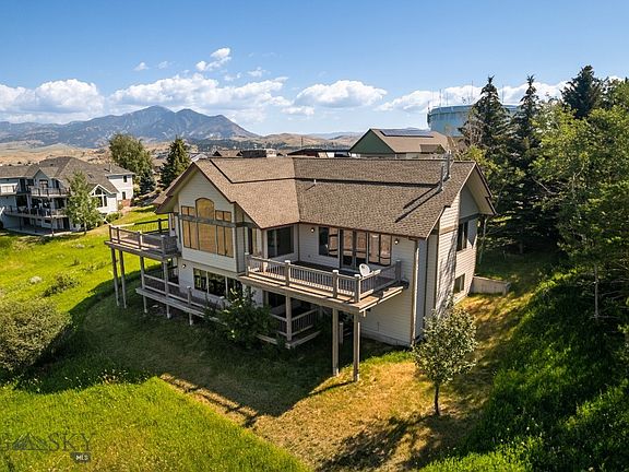 Unequalled views of the valley. Large windows and two-level wrap around porch allow for views of the entire valley for miles. You can see the entire city of Bozeman, the Bridger Mountains, Lone Peak - you have to see the views to believe it. Large lot backs up to open space and Burke Park trail system. Open floor plan is great for entertaining, with master suite on the main level. Walk out basement features high ceilings and large windows for plenty of natural light. Basement has a large family room, two bedrooms plus an additional master bedroom and large open room with windows that can be used for storage, workspace, or converted into additional bedrooms. Great functional floor plan on one of the best lots in Bozeman.