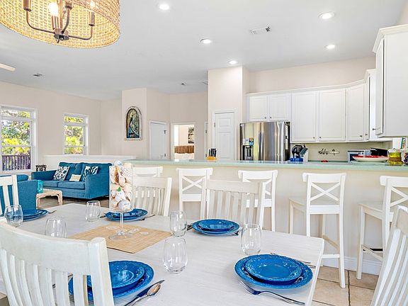 Welcome to Island Blessings, a charming 4-bedroom, 4.5-bathroom home nestled on a peaceful wooded lot in a coveted gated community on St. George Island, FL. This lovely two-story residence offers ample space for family and entertaining. The top floor consists of the main living areas, with an open-concept kitchen, living, and dining room. A half bathroom and laundry closet are conveniently located on this floor, along with the luxurious master suite, featuring a king bed, private bath with dual sinks, stand-alone shower, and a relaxing window seat. The lower level is home to three bedrooms, including a second master, each with its own private bathroom, that adorn soaking tubs. Just down the hallway, you'll find a morning kitchen with a mini fridge and sink, perfect for easy prep or quick snacks for the pool or beach. The home features abundant porches on each level, both front and back, providing multiple spaces to enjoy the fresh air, relax with a good book, or entertain guests while taking in the natural beauty that surrounds you. Step outside to your private backyard oasis, where a stunning in-ground pool with a cascading waterfall spa awaits. The expansive outdoor space is perfect for grilling and relaxing, with a serene path leading to the beach, just a short walk away. Living in this exclusive gated community provides access to outstanding amenities, including a clubhouse, multiple pools, an exercise room, and 24-hour security. The property's prime location, combined with its luxurious features and outdoor amenities, also makes it a lucrative rental opportunity, perfect for those looking to generate income while enjoying the best of both worlds – privacy, tranquility, and easy access to the beach. Don't miss your chance to own this exceptional home! New Buyer fee 0.50% of the purchase price to SGPOA