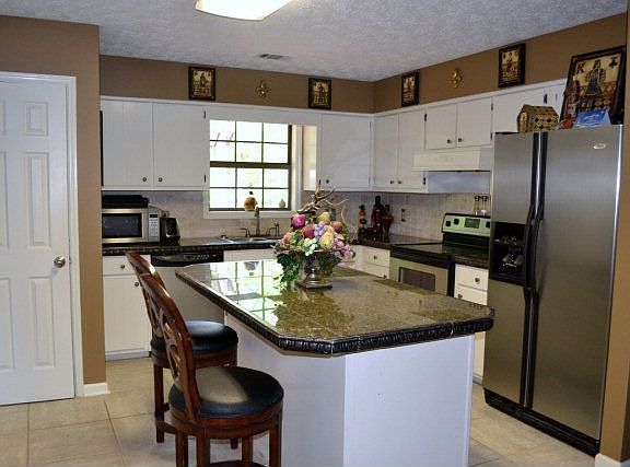 This beautiful home is located at the culdesac on Leo Lane. No through traffic.Very nice Landscaping. Modern Kitchen, granite tile counters in kitchen,Island, Tile floors and carpet.Hot tub on back patio. Lots of outside storage,and privacy fence in back yard.Large brick fireplace in living room. Brick and vinyl siding on concrete slab mean low maintenance.roof approx. 6 yrs old. carpet 2 yrs old