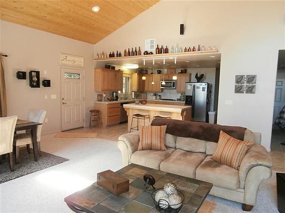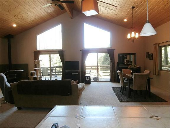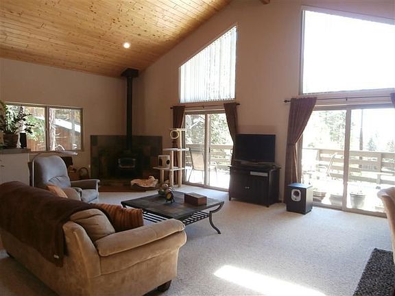 Beautiful View in Alta Sierra! Custom built & energy efficient contemporary home. 2 bdrms, 2.50 baths. Custom cabinets, sky lights, wood burning stove, Kitchen has double ovens, island, walk-in pantry. Beautiful deck to enjoy the fresh outdoors! Interior staircase from garage to the upstairs living quarters, indoor laundry. Great vacation home or primary residence! Huge 900 sq ft finished garage per seller. Wofford Heights mailing address, home located in Alta Sierra & on a snow plowed road.