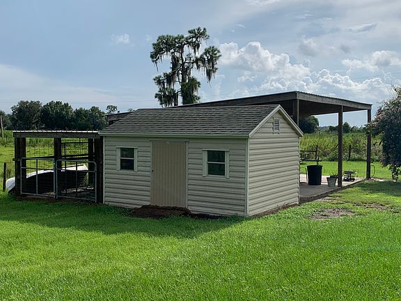 Great Opportunity to own 10 acres just outside of the city limits of Wauchula with a 4BR/2.5BA CB home built in 1998, with almost 3000 total sqft. Home includes big eat in kitchen, wood burning fireplace, 2 car garage and a golf cart/mower entrance, high cathedral ceiling in family room, front and back open porches, a pond, pole barn and shed. The home was repainted and re-roofed in 2018. A must see for country living and still close to town.