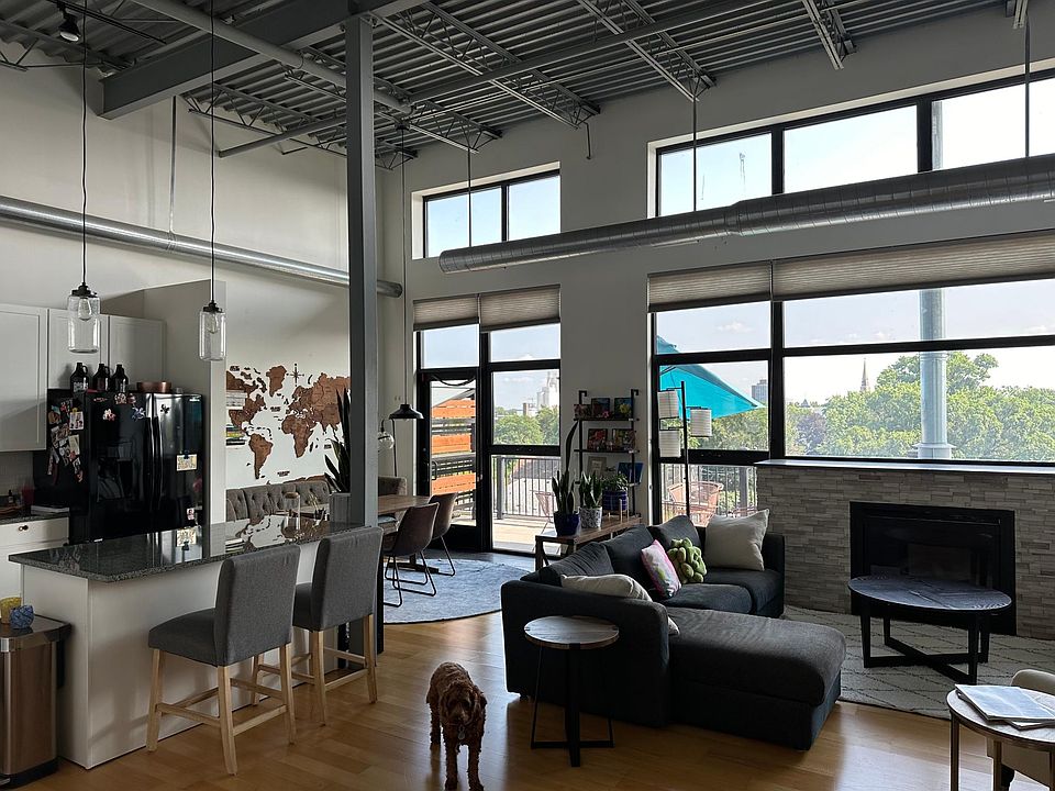 Penthouse at Madison Lofts - Floor to ceiling south facing windows with 20 ft ceilings and natural light year round. Full length private balcony with view of downtown. Two large bedrooms and 2 bathrooms, gas fireplace, new washer & dryer in unit. Heated garage parking. Description: Madison Lofts is right in the Arts district, walking distance to Quincy Street (Indeed Brewery, Centro restaurant) and Logan Park. Unit 403 is on the top (4th) floor. The primary bedroom is quite large (easily fits king size bed) with a large ensuite bathroom and large walk in closet. The guest bedroom is larger (fits a queen bed, desk, couch) and has a similarly large walk in closet - it could also be an office or den. Guest bathroom is in the hallway. The main room has floor to ceiling windows that face south, so there is natural light all day, all year long. In the winter, the sunlight warms the room and I rarely need to turn on the heat during the day. The kitchen has an island with bar seating, great for chatting or hosting while cooking. There are granite countertops, a gas stove, and modern appliances. The gas fireplace is the centerpiece of the living room area. The space is large enough to have multiple layouts depending on your priorities. This unit is great for a solo person or a couple. There is space for 1 person to comfortably work from home (or 2 if the guest bedroom doubled as an office). The occupancy limit is 2 adults and 1 child. Timing: Ideal move in is early November 2024 with an 18 month lease through May 31, 2025. However, I am open to conversations on the move in date and length of the lease (minimum of 12 months). Pets: Cats and dogs allowed (up to 2) with owners approval and must adhere to building HOA rules. Pet deposit of 50% of 1 month's rent, fully refundable at move out. Laundry: In-unit front-loading washer and dryer, new machines in 2023. Large and very nice! Parking: 1 parking spot in heated garage with elevator access. Gym: In building gym, it is small but well equipped - treadmill, pilates reformer, free weights, and more. Televisions and speakers. It is rare that there is more than 1 person there at a time. Utilities: Water, trash, recycling, and sewer are included. Renter pays for electricity, gas, and wifi. Internet options: Madison Lofts is set up with Xfinity and Implex ($50/month, no taxes or fees, at least 100Mb up and down, never throttled). Community: The building is quite friendly with an active Home Owners Association. There are planned events and often impromptu gatherings in the front patio or lobby area. If you email the building for a cup of sugar, you will have multiple responses within the hour! For context: I lived here for 4 years and have loved it! For family reasons, I am moving to St Paul and do not plan to move back in, so I am looking for a long term renter(s). Application Process: Please "Request a Tour" if you are interested and I will get back to you within 1 day. If you are interested after the tour and we align on a timeline, then I will ask for an application fee of $40 via electronic transfer (venmo / zelle). The application fee is the final step and it is only to cover the cost of the background check and credit check. I will also ask for a copy of all tenets drivers licenses and income verification (to confirm that monthly income is 3x monthly rent). Credit check is a consideration but I understand that it does not tell the entire picture. I am open to a co-signer, who would also need to go through the application review process. Utilities: Water, trash, recycling, and sewer are included. Renter pays for electricity, gas, and wifi. No smoking indoors or on the balcony. Must adhere to all HOA rules.