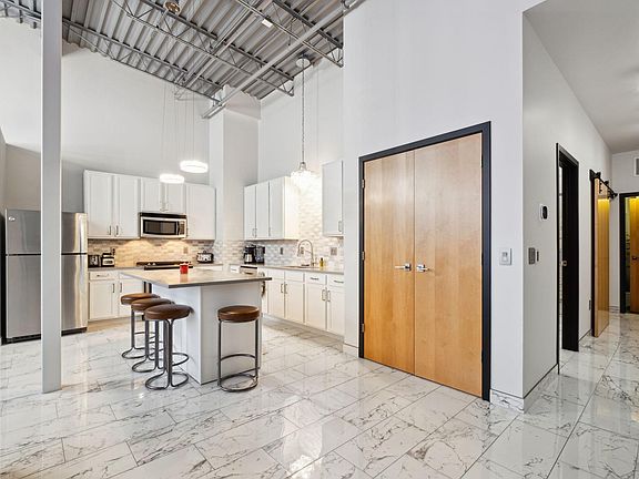 Luxurious Penthouse Condo with Breathtaking Skyline View in the heart of Northeast Minneapolis's vibrant Arts District. Surrounded by a lively community with renowned breweries and dining hotspots like Young Joni’s, Earl Giles, Centro, Stanley’s, and more, this condo offers an unparalleled lifestyle experience. Boasting over $100,000 in renovations including upgraded kitchen with sleek enamel cabinets, a spacious center island, elegant quartz countertops, and stainless steel appliances. The modern glass tile backsplash, trendy chrome and crystal lighting, and brushed nickel hardware and faucets add an extra touch of sophistication. Indulge in the opulence of marble tile throughout the entire condo, complete with heated floors in all five zones. The expansive 280 sq. ft. patio, the largest in the building. With a sizable storage unit and two-car underground heated parking, convenience and comfort are seamlessly integrated into this exceptional living experience.