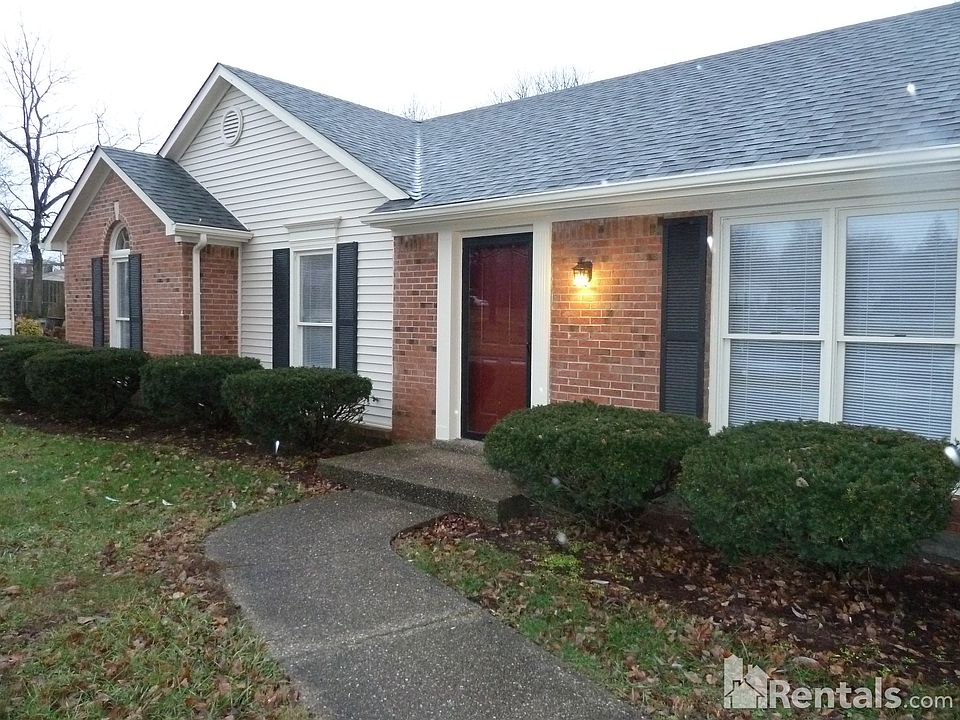 House is rented and is no longer available. Located off of Lagrange Rd in Lyndon. Easy access to Shelbyville Rd and Hurstborne Lane. This is a much newer section of Millgate. Fresh paint, blinds, carpet and vinyl. All appliances in kitchen stay, including refrigerator Master bedroom has bath and large closet. Other two bedrooms are nice size. Laundry room off of large kitchen. Sliding glass doors from kitchen to patio and private back yard. Family room has vaulted ceiling with fan and fireplace. Hot water heater and ac are new. Turn off of Lagrange onto Millgate, take first right on Erin, take first right on Meadowgate. House just around corner in cul de sac.