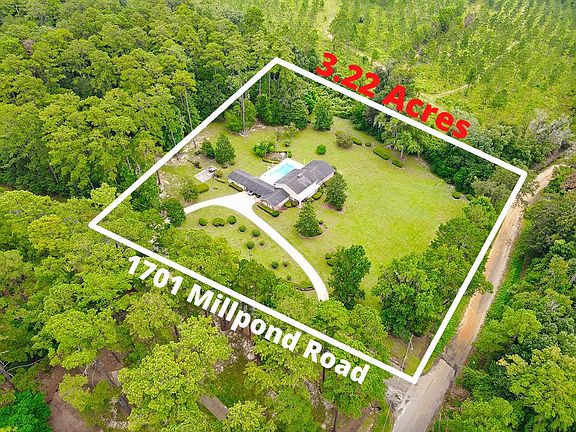 1701 Millpond Road is a rare opportunity. It's nestled in the heart of Thomasville on famed Millpond Road bordering one of Thomasville's blue ribbon plantations. It's the last house down on the left where the paved road meets dirt. At over 4000 square feet, this custom built home is vintage with a contemporary twist and everything is well thought out. There are 4 bedrooms and 3 full baths, and the views from the picture windows are gorgeous. The kitchen and breakfast area is the perfect backdrop to the floating staircase which is the star of the show.  There's a formal dining room, living room, and a cozy den with even extra space. The main floor owner suite has a sitting area and attached sunroom with stunning views of the backyard which would also make a great office. The walk-in closet is seriously large enough to be a bedroom! This hard to find property sits on over 3 secluded acres dotted with Georgia pines and magnolia trees and features a large inground swimming pool with pool house and an RV pad. This home checks off quite a few boxes and is minutes from downtown Thomasville, Archbold Hospital, schools, and all of the wonderful things our City of Roses offers. This amazing home is awaiting love, laughter, and new memories to be made!