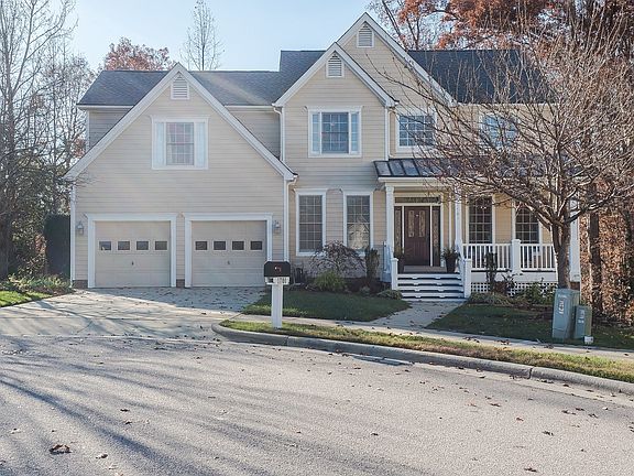 Stunning former showcase home in North Raleigh, nestled on a wooded cul-de-sac lot. Two story entry flanked by an office & formal living room which flows into butler's pantry & formal dining. The kitchen & family room have cathedral ceilings, lots of natural light, & a fireplace. The second floor hosts all 4 bedrooms, including owner's suite w/ tray ceilings & luxurious bath, dual vanity, granite counters & enormous tile shower. Roof-2015 (architectural roof shingles). 2016, installed high-efficiency HVAC