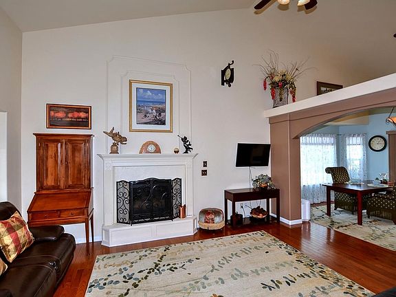 Upon entry you will see a large great room opening up to Dining and Kitchen with beautiful solid Oak Hardwood floors. This is a very easy main floor living home with Main Floor Master Suite and Laundry. This home has beautiful windows looking out to the gardens and the maple and oak trees in the greenbelt. Newer furnace, hot water htr, lighting, gas stove and refrigerator. Granite counter tops in the Kitchen, Master Bedroom and Powder Room. Kitchen has 42" cabinets with pull outs, pantry, new gas stove (6-17), Broan fan hood and all stainless steel appliances. Hardwood floors continue down the hall and into the powder room. Luxurious master bath room with soaking tub, shower and adult height granite counter-tops. Large private patio with arbor looking out at the large screened Gazebo and rose garden. Property backs to a treed green belt and is one block from park. Small shop in Furnace room.