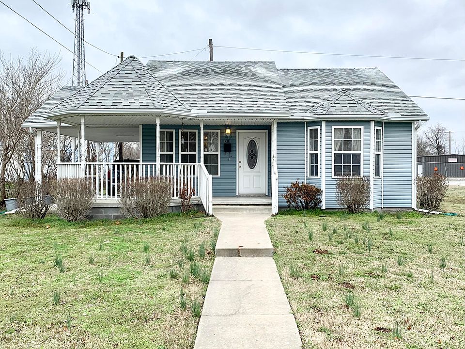 Newer home in North Joplin with amazing curb appeal on a corner lot! One owner, very-well taken care of. Perfect for an elderly couple or a first-time home buyer. You are welcomed by a front porch - perfect for entertaining - and a large great room with tons of natural light! This home also boasts 2 large bedrooms with tray ceilings, a good-sized bathroom, and a concrete carport.