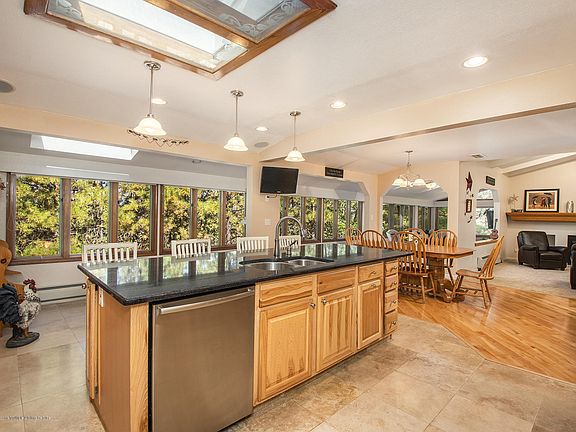 Look no further, your Dream Home is here! Soaring spruce & aspen trees create privacy from the street and when you open the front door, you step into spacious luxury: You are greeted by lovely glass doors and a large foyer that opens to the Great room plus bonus room! Enjoy two Master Suites w/ updated bathrooms on one side and the main Master on the other side, complete w/ a fireplace, vaulted wood-beam ceiling, large walk-in closet, jetted tub, walk-in shower, vanity table, and full length mirrors. The Kitchen impresses with an expansive island, stunning granite counters, double oven, 2 pantries, plentiful skylights, and relaxing forest views from the large windows. Central A/C, efficient hydronic heating, and extensive under home storage (with workshop potential) and TONS of closet