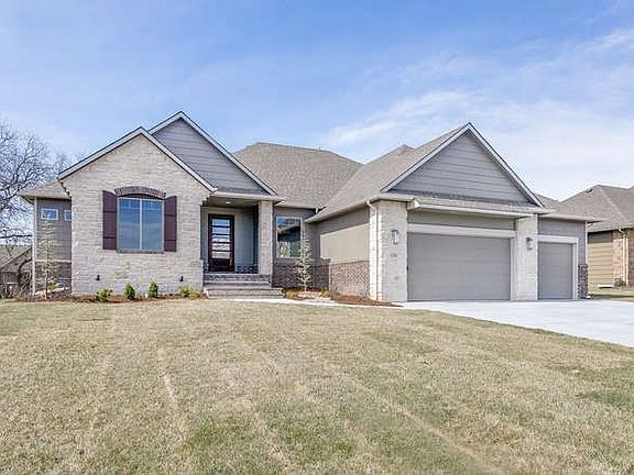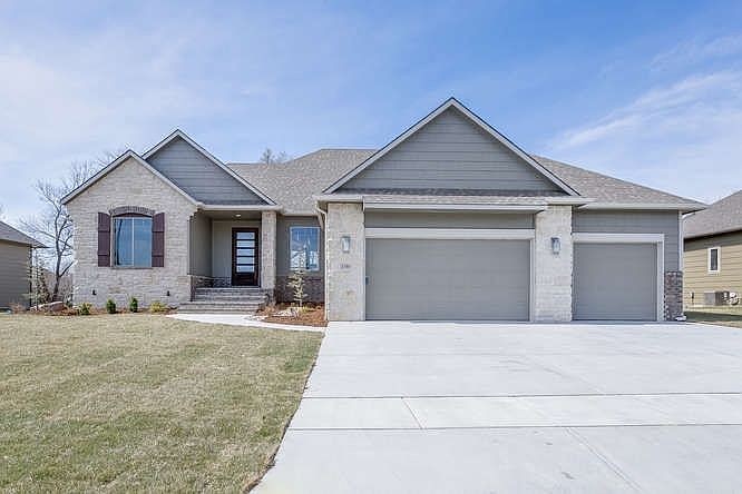 The "Catalina" presented by Sharp Homes. Located on a treed lot this 5 bedroom 3574 square foot ranch has all the bells and whistles you would expect from this builder. Main floor finishes include barrel ceiling in the kitchen, custom hood, granite kitchen counters, motion sensor pantry, 14' ceiling in great room with ceiling criss cross beams, 7' bookcase on one side of fireplace, Majestic Patriot fireplace with stone/tile to the ceiling and that's just a few to mention. Jack and Jill bath on the main level with grand master bedroom/bath suite with connecting laundry room...seems to be a hot button for buyers these days!! Main floor plan also offers a powder room for your guests. Retreating to the basement you will find a comfy family room with electric fireplace wetbar/pub area and two additional bedrooms at opposite ends of the home each offering its own bathroom. Andover School District but located within Sedgwick County. All general and special taxes are estimates. Sales office open 1-5 Saturday thru Wednesday, closed on Thursday and Friday.