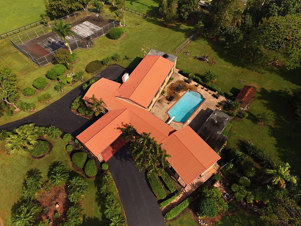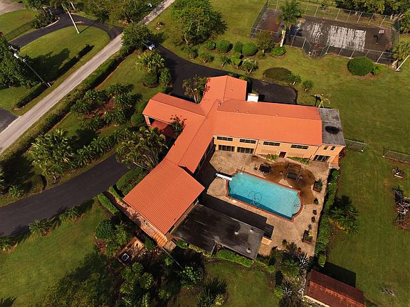 Large custom Built Estate Home on 2.36 acres. This property has been updated with a metal roof, Impact glass windows, and Newer Kitchen. The home is very unique with lots of charm and ready for a large family. set up for entertaining. The tennis court is on a separate lot. This home features 6 bedrooms and 6 full baths 1 half bath with 7678 total square feet. The large eat in kitchen has been updated with custom wood cabinets and granite countertops, there is also a small kitchen downstairs and a built in gas grill on pool patio. Enter the home from the large portico into a foyer/ seating area, open to the formal living room with adjoining formal dinning room adjunct to the eat in kitchen with center island. Master bedroom has lots of closet space and a exercise room or nursery adjacent