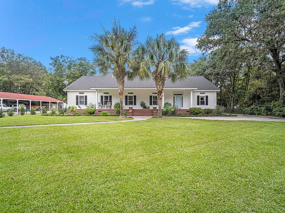 Never want to leave home again with this beautiful ranch getaway!! Down the street from the brand new Publix shopping center in Moncks Corner and only 20 minutes to the lake, this OPEN CONCEPT home sits far off the road on over 1.2 acres and boasts of entertaining spaces. Enter your new home on a beautiful long southern style front porch and into the inviting main living area. With a spacious living room and grand fireplace, perfect for cozying up, leading seamlessly into the large kitchen and inviting dining area. Open and filled with natural light, this kitchen is a chef's dream, including a large island area, tons of open counter space, and 5-Star brand oven/range! Don't fret when it comes to pantry space either, with a matching custom built butlers pantry that leads to alarge laundry and custom pantry area, right behind the kitchen. When it comes to bedrooms, space is not a problem either! The private owners suite is a dream come true, with room for a lounging area or private study, two walk-in closets and a jaw dropping master bath; including soaking tub, walk-in upgraded shower, separate double vanity and custom 3rd vanity to get ready at. The two secondary bedrooms are on the opposite side of the home from the master and complete with walk-in closets and their own full- bathrooms. Step outside to your very own private oasis! Where a spacious screened in porch right off the dining area and long open deck perfect for grilling, lead you to a grand pool area! Complete with a large pool, waterfall style hot tub, firepit area, and resort sized cabana. Perfect for all your outdoor entertaining needs! If a workshop is what you need- This home has you covered there too! With a 4 bay commercial sized garage, including mechanic lift, bathroom, and AC ability. Or it makes for a great space to store all your toys; including camper, with the 50 AMP SV hookup. 2021/2022 upgrades include, new roof, flooring/carpeting, landscaping, new dehumidifier in crawlspace, interior/exterior painting and dishwasher.