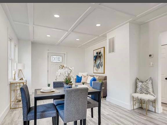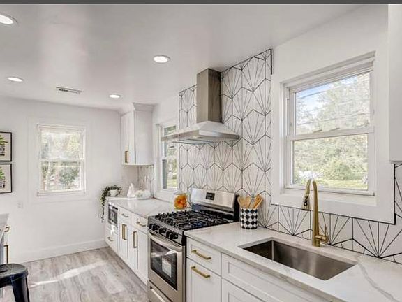 Beautifully renovated 4BR/2BA expanded Cottage on a sprawling corner lot. This adorable, white-sided/black-trimmed home sits atop the green lawn that leads to a cozy covered front porch. Open the door to find a bright and airy open concept living space with recessed lighting. No attention to detail was missed when transforming this home with a mixed metal design featured in both bathrooms and the stunning kitchen. In addition to the use of black and white inside and out. The spacious living room boasts a picture box trey ceiling with an open view of the dining room and kitchen. The amazing kitchen features stark white cabinets with gold hardware, quartz countertops, an innovative backsplash design, a stainless hood vent above the gas stove, a stainless sink below a window, and a cozy breakfast bar complete this gorgeous kitchen. A spacious primary bedroom with an abundance of natural light, a sizable second bedroom, and a full bath with a classic black and white tile design featuring accents of gold, and double sink vanity with a quartz top completes the main floor. The post and rail stairs lead to another open-concept living space with a 3rd bedroom, office, and sitting areas. The lower level is finished boasting a large space perfect for a family room and playroom, a 4th bedroom, another stunning full bath, laundry, and storage. The kitchen door leads to a large backyard with an abundance of green space, shad trees, a 2-car gravel driveway, and a spacious wood deck perfect for entertaining outdoor BBQ's with family and friends. This home is move-in ready, perfect for a family, and includes updated electricity, new HVAC and water heater, and in close proximity to shopping, restaurants, and commuter routes. Owner pays water. Renter is responsible for gas and electric. Last month's rent due at signing. Pets negotiable with non- refundable deposit and monthly pet rent. Minimum 12 month lease. No smoking inside the house.