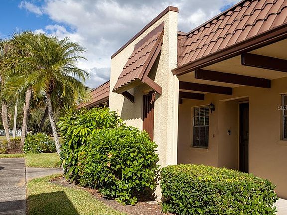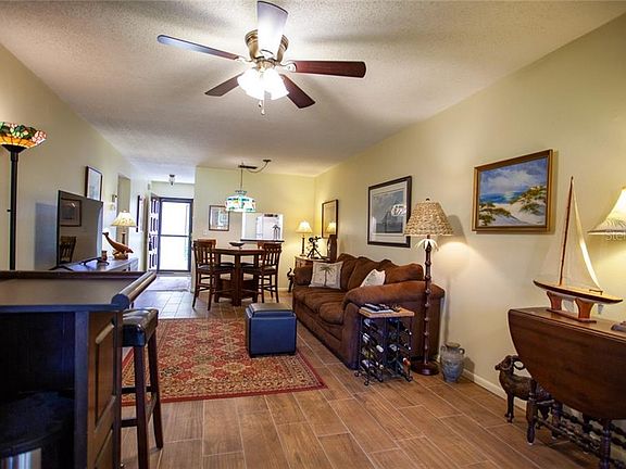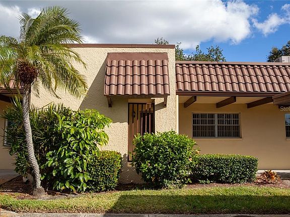 Welcome home to Pinehurst Village, a practically maintenance free 55+ Dunedin community. Immediately as you enter this cozy unit you will notice the care and attention that the seller has put into this space. Many updates include luxurious wide wood plank ceramic tile throughout, "Ring" front doorbell system, updated fans and lighting, fresh paint throughout, and hurricane impact windows in the Florida Room. Stacked washer and dryer are in the hall closet so no need to leave the comfort of your home to do laundry. Unit has an open great room layout making it seem larger than the square footage. Great room and split bedroom plan are ideal for guests. Master bedroom will accommodate a king bed and has 2 closets (one walk in) with lots of additional shelving added. Unit is located conveniently across from the heated pool, clubhouse, shuffleboard courts, and car charging stations. Covered parking space is right out your front door. Enjoy single level living (villa) with no noise from any units above and even have a little attic storage! Pinehurst Village is popular for their meticulously maintained grounds and their proximity to the Fine Arts Center and Dunedin Community Center. Popular Historic Main Street Dunedin shopping and dining district is only a short distance to the Southwest along with the beautiful waterfront sunsets! Room sizes are approximate and should be verified by the buyer.