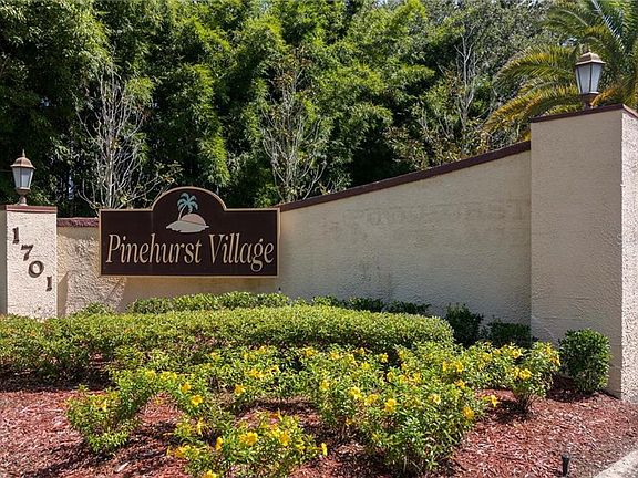 Meticulously maintained move in ready villa style condo in popular 55+ Pinehurst Village community. Beautiful updated kitchen has a pass thru window to the Dining Room. Laminate flooring throughout most of the unit and fresh paint. The Full Bathroom has tile flooring, a step in shower and has been updated. The Florida room has floor to ceiling updated windows and is light and bright. A nice storage room hides the water heater (2002) with plenty of space for other items. Newer Hurricane windows throughout. Washer/Dryer in unit. Electric panel updated in 2018. Your assigned carport space is just outside your front door and there is ample parking for guests. An active community with shuffleboard, swimming pool and community/rec center is just across the street. Pinehurst Village is conveniently located just 1/2 mile from the Dunedin Community Center and Fine Arts Center. Just 2 miles to downtown Dunedin and all of the amazing restaurants & shops. Just 4 miles and you can be out to the Dunedin Causeway and the beautiful beaches at Honeymoon and Caladesi Island. Golf? You are just about a mile to the Dunedin Golf Club, former home of the PGA and also the par 3 Stirling Links. Sorry, no pet dogs. Cats and some birds are permitted.