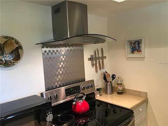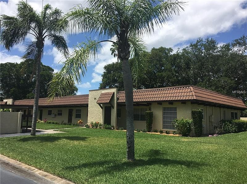 TURNKEY IMMACULATE- front load washer hooked up, gorgeous travertine lookalike ceramic tile from front door to shower walls, leaded glass panel custom built for kitchen window - Nearly EVERYTHING has been replaced: ALL WINDOWS, CABINETS, APPLIANCES and HOT WATER HEATER, DOORS, LIGHTS, SHELVING, BASEBOARDS, CEILINGS (no popcorn). You will appreciate the covered parking, and low monthly maintenance of $242 which includes water, cable, exterior insurance and maintenance, heated pool and clubhouse. Great location near the sandy beaches of Honeymoon Island State Park, downtown Dunedin, Pinellas bike trail, Fine Arts Center, Community Center Park with Library, and Countryside Mall nearby. HOA is fiscally sound with healthy reserve balance. Large rooms with great natural views, very quiet as there is minimal traffic in complex. Double closets in bedroom, stainless steel appliances include range hood, range, refrigerator, and dishwasher. Large granite tile countertops complete the efficient kitchen with garbage disposal and water purifier installed under the sink. NOT in a flood zone. Seasonal rent is $1200 per month. Furniture available upon request. Realtor is owner.