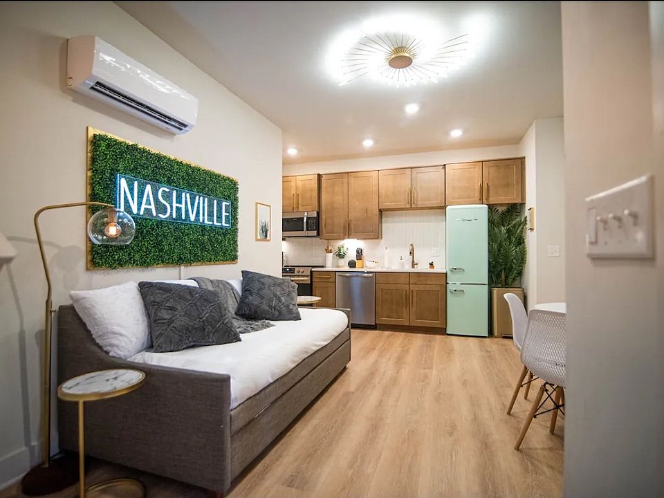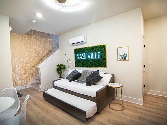 Welcome to your East Nashville retreat, perfectly situated near the city's best restaurants, bars, and coffee shops. This fully furnished 2-bedroom, 1-bathroom townhome offers comfort, style, and convenience for your stay. On the first floor, you'll find a spacious living area, dining space, and a fully equipped kitchen, perfect for cooking at home or enjoying takeout from nearby local favorites. Upstairs, the primary bedroom includes a walk-in closet and a dedicated vanity area, along with a full bathroom for your convenience. The top floor features a second bedroom and access to your private balcony ideal for relaxing with a coffee in the morning or unwinding with the sunset in the evening. The unit also includes an in-unit washer and dryer for your comfort. You'll have one assigned parking space behind the unit and additional street parking right outside your front door, making coming and going easy during your stay. Owner pays for water, lawn maintenance, and trash collection. Renter is responsible for electricity and wifi. One year lease is preferred, but short leases will be considered on a case by case basis. No smoking inside the unit.