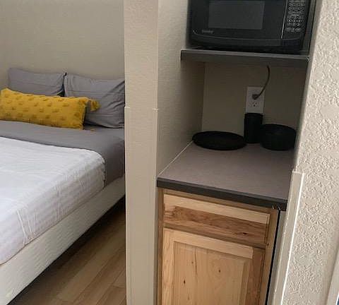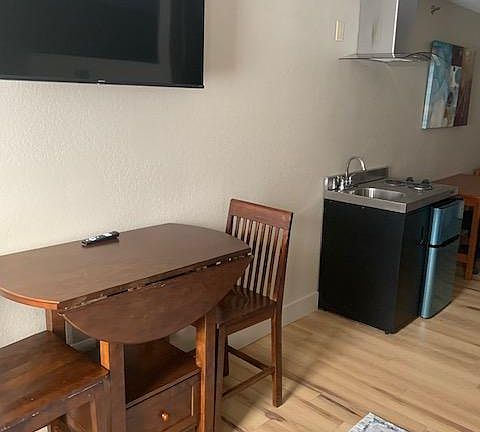 Furnished, freshly painted, new flooring, new appliances. Studio with divider between bedroom and living area. With a Kitchenette in between. Microwave, refrigerator, two burner stove and sink. Includes utilites, Wi-Fi. Includes all linen. There is a laundry facility just down the walkway. Adjacent to restaurant, lounge & casino. Walking distance to groceries, restaurant, & Capitol. NO Smoking, pets or noise. Owner pays all utilities & Wi-Fi. Rent due on 1st of month. Prefer a 3 to 6 month lease or longer.