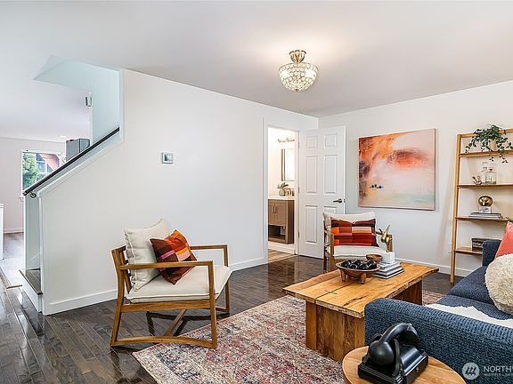 This townhouse has extra large bedrooms with vaulted ceilings and walk-in closets. The living, dining and bedrooms all get wonderful sunlight and have good privacy. This house is very well built and in excellent shape. New paint inside and out! It has a garage and a small garden seating area. It's in a great location close to downtown. A 5 minute walk to light rail! The Mountain to Sound Bicycle Trail is just at the end of the block! Please see the narrated video walk-through.