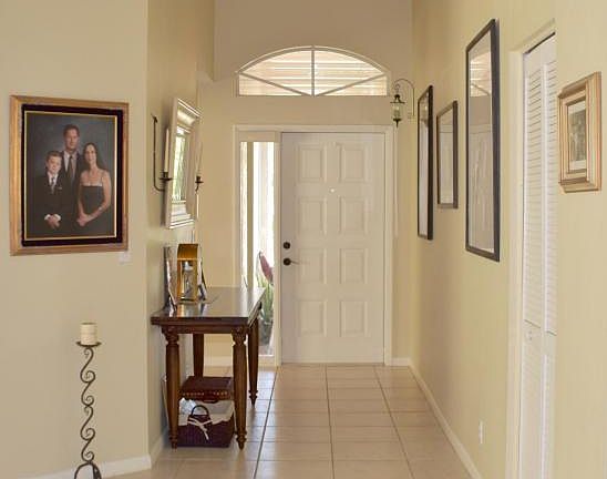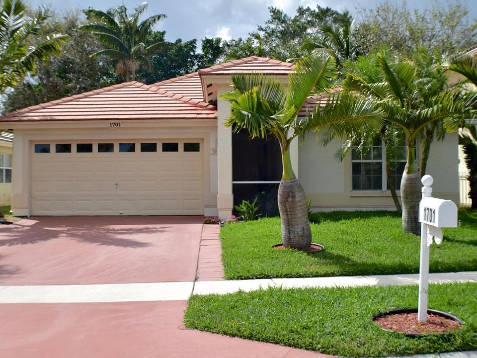 Fantastic 3 bedroom/2 bathroom home that features an open floor plan, spacious eat-in kitchen, and large living area. Tile flooring thru-out the home with carpeting in on bedrooms. Split bedroom floor plan. Prime location in community with no neighbors across the street with water views and a large back yard on the premier Wanderers Golf Course. Spacious 2 car garage. Low HOA Fees! Zoned for Great Wellington schools.
