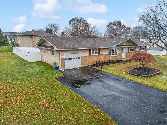 ***Multiple Offers, Highest and Best by Monday 12/11 6pm*** Unveil the potential of this perfect family home! This single-story 3-bedroom, 2-full bathroom ranch-style residence, sprawling over 1822 sq ft, invites you to shape your vision. Park effortlessly with the built-in garage and driveway, leading to a fully equipped kitchen with all appliances included for a smooth move-in. Gather in the spacious living room or family room, featuring a wood-burning fireplace, connected to the convenience of a sunroom, perfect for relaxation and soaking in natural light. Enhanced by a new central A/C unit with a heat pump, offering flexible heating alternatives and a new water softener. New carpet from the entrance living room into the bedrooms with hardwood floors underneath if that is more of your style. Imagine the immense possibilities for outdoor enjoyment your family can experience on this expansive corner lot with a fenced in yard for added privacy. Downstairs, the full basement awaits, equipped with a pool table, perfect for recreation or additional storage, make it your own! Positioned conveniently between the two major cities in the Lehigh Valley, Allentown and Bethlehem this property ensures swift commutes and easy access to essentials. Explore the potential and make it uniquely yours!