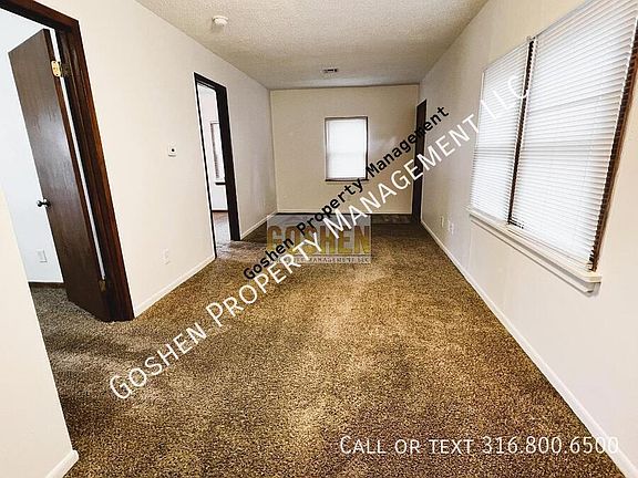 2 Bedroom 1 Bathroom 728 SQFT Accepting Applications. Set up a tour today! Rent: $850.00 Deposit/ Leasing Fee:$8500.00 Application Fee (per applicant): $50.00 (non-refundable) Pet Rent: $25.00 per pet per month Animal Fee (per animal): $250.00 (non-refundable) Tenant pays all utilities including trash Tenant responsible for lawn care This splendid home features all the cozy nooks for comfortable living. The spacious living room seamlessly connects to the kitchen, which boasts new flooring, full-sized appliances, and a stunning granite countertop. The versatile back room can serve as a dining area, storage space, office, or whatever else you may need. The generously-sized laundry room accommodates a full-sized washer and dryer, with additional space available. The bedrooms offer both comfort and privacy, while the bathroom showcases brand new vinyl and includes a full-sized bathtub. The expansive backyard is home to a detached garage, making this residence an ideal little gem. WANT TO OWN THIS HOME? WE DO LEASE OPTIONS! Goshen Property Management requires all tenants to carry renters insurance with liability insurance. Nearby Schools: Linwood Elementary Mead Middle East High Goshen Property Management 1122 E Osie Wichita, KS 67211 Hours: Mon-Friday 9am-4pm Carpet Garage Granite Counter Tops Lease With Option To Purchase Vinyl Flooring Washer/Dryer Hook Ups