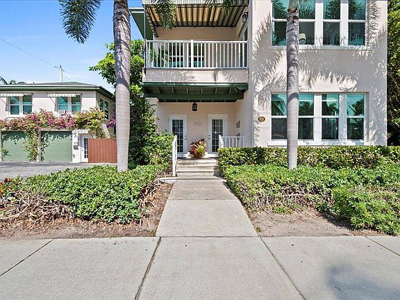 This 1918 2-story classic, Historic designated, CBS constructed, zoned Multi-family property has a detached 2-car garage with a 2nd floor one-bedroom apartment. Both structures have complete impact windows and doors, upgraded plumbing, and wiring. The main house boast original honey colored pine wood floors, 2 fireplaces, smooth 10 Ft ceilings, recessed lighting, and 2nd floor veranda. The upstairs and downstairs kitchens allow use as a 3-unit investment property or a single-family home. The renovated bathrooms are very clean and well maintained. With plenty of on-site parking and courtyard. Fantastic location, just 1/2 mile south of downtown, one block from the Intracoastal Waterway. Close proximity to the Norton Museum, Worth Avenue, Palm Beach, Atlantic Ocean, Kravis Center, & PBIA