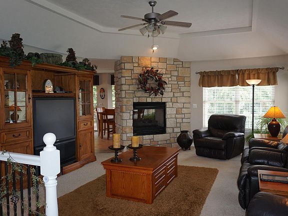 Situated on 3 acres with woods behind in Whip-poor-will-Hills, this lovely 5 bedroom home features a walk-out basement and a 3 car garage. A formal dining room is at the entry both with hardwood flooring. The large living room has a see through fireplace which is shared by the kitchen eating area. Kitchen has granite counters, eating bar, black appliances and tile flooring. The three bedrooms on the main level have the split bedroom plan. The master bedroom suite includes a jetted tub, large tiled walk-in shower and tile flooring. In the walk out basement is a rec room with wet bar which has a bar refrigerator and microwave. Two more bedrooms, a full bath and approx 1000 sq. ft of unfinished rounds out the basement. In back is a covered deck and covered and uncovered patio