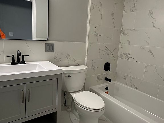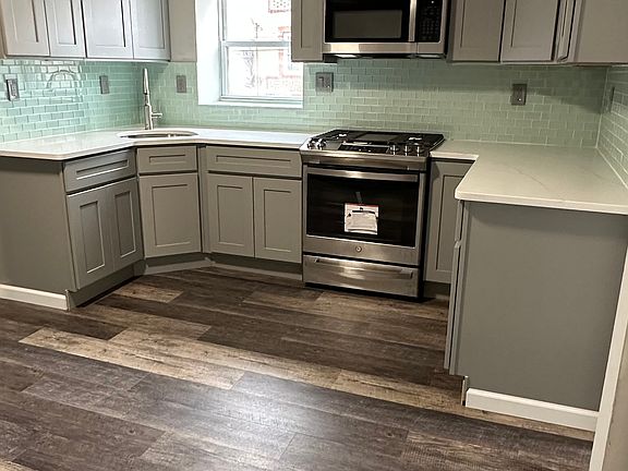 Apartment was completely gutted and remodeled with everything new ... windows, doors, flooring, lighting, tiled bathroom and kitchen with new stainless steel stove and microwave. Building is about 8-10 blocks from train station, bus right outside your door, laundry, restaurants and shopping approximately 2 blocks away. Tenant pays gas (heat, hot water and stove gas) and electric. Owner pays for cold water, garbage and recycling. No pets allowed. No smoking in building. One year lease. No application fees. Parking on premises will be an extra $100.00 per month