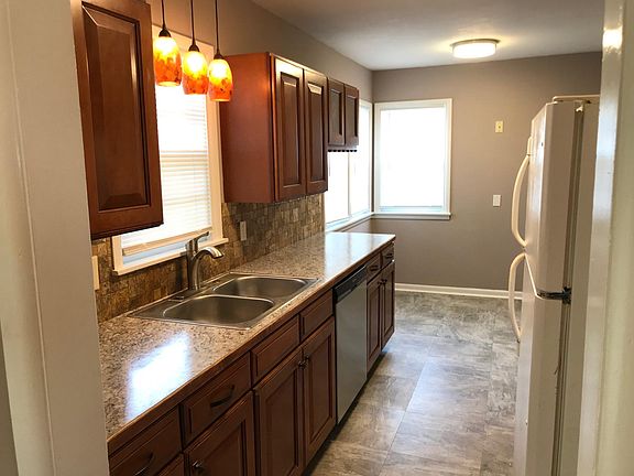 This house is a must see inside to appreciate how great it is. Large, nice, clean home featuring: 3 bedrooms with lovely hardwood floors. 1,182 sq ft brick home This is larger than most 3 bedroom homes. Large patio in back with patio overhang. 1 full bath with shower and great cabinet space. Updated kitchen with beautiful cabinets, refrigerator, range, new dishwasher, new countertops, disposal, wine goblet rack and new flooring. Living room with hardwood floor. Dining room with hardwood floor. Wood fence privacy backyard with storage shed. Garage with opener. Large driveway has room for double parking. Laundry hookups. One block from St Joseph Hospital. $25/adult application fee to cover credit and criminal/civil checks. Tenant responsible for all utilities, trash and lawn and landscape maintenance. No smoking in the unit. Small dogs will be considered on a per pet basis.