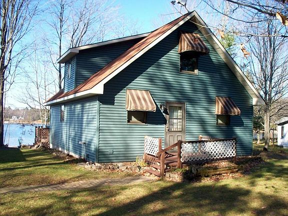 The perfect vacation or year around lakefront home. This nice Chalet style frame built home has many new and great up-dates in the last couple of years. New vinyl siding on the home and large garage, paint/décor, carpet, and a really sweet loft has been added. This home also features a jet tub in the full bath, alarm system, breaker box set up for generator, and nice awnings. Super location for snowmobiling, and very close to a boat launch on Mullett Lake. Great fishing, swimming and kayaking right out your front door.