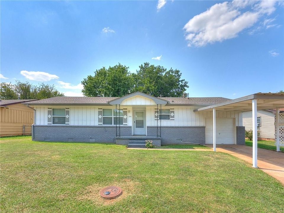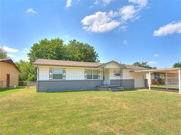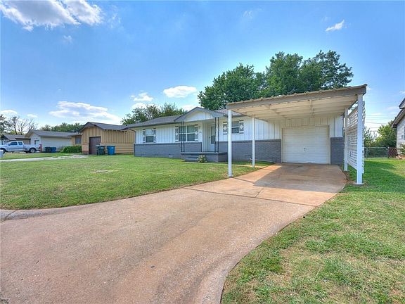 Move in ready! The interior walls are freshly painted in this cute 3 bed, 2 bath home. The original hardwood floors throughout have been refinished. All original windows and bathtub were replaced in 2019; the heat & air was replaced in 2018. French doors in the living area provide lots of natural light and access to the lovely fully fenced backyard and covered patio. The one car attached garage and covered driveway provide plenty of protection from the elements for your vehicles. This home is conveniently located in the sought-after Carl Albert School District, near plenty of shopping, restaurants, grocery stores, the highway system and Tinker Air Force Base.