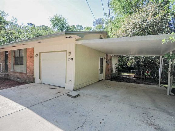 Adorable, move-in ready single family home with the perfect open floor plan and fenced backyard! If you are looking for the perfect home to entertain, look no further! Open living area connects to kitchen and dining and has new laminate wood flooring. Large kitchen includes tons of counter space to cook, ample cabinets/storage and a bar. Huge master suite has two closets. Both bathrooms have been updated with new vanity, light fixture and tile. The whole back half of the house is a heated and cooled addition, giving an extra 676 sq ft of bonus area. Could be used as a sunroom, game room, office, gym or even extra bedrooms! The backyard boasts of two covered porches (one is screened), storage shed and fenced area. One car garage and one car carport.