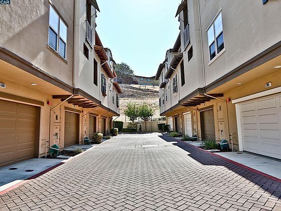 A hidden gem is available now & freshly rejuvenated. This modern townhouse; rare end unit, is the largest model; 1832 sq. ft., 3 bedrooms, 2.5 bathrooms, built in 2008. It boasts rich, vibrant hardwood floors, towering ceilings, granite countertops & contemporary features. It also offers a wall of windows with great light & flow. Perfect for entertaining - a beautiful kitchen, open family room, dining room and living room separate from the upstairs living. Upstairs you will find a master bedroom with sunset views, huge walk in closet, master bath w/ dual sinks, large tub & separate shower. The two additional bedrooms are adjacent, sharing a private full bathroom. Laundry closet, window coverings, LED recess lighting, and dual A/C system make this home one-of-a-kind. It also offers a large side by side 2 car garage with incredible storage options. Walking distance to Concord Bart, its a close commute to shopping, nature trails, freeways, Walnut Creek, Pleasant Hill & downtown Concord.