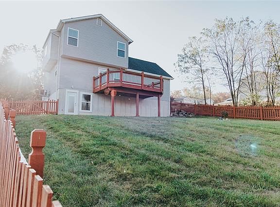 Welcome to a wonderful move in ready home with nice landscaping, covered front porch & a beautiful fenced in corner lot with a large side yard. School bus picks up right on the side of house. Inside you will find a very clean nice well kept house . The spacious kitchen has many cabinets with black appliances. Adjacent breakfast room has a glass door walk out onto a large custom deck overlooking the gorgeous backyard with surrounding wood fence. An open stairwell to lower level is where framing is in place to finish the basement how ever you like to make this home your own. Upstairs has a bonus room with a dormer window alcove. FUN Facts new roof, carpet, water heater and paint!