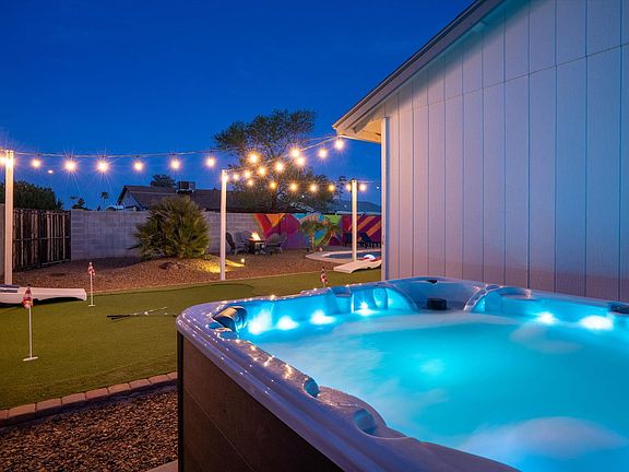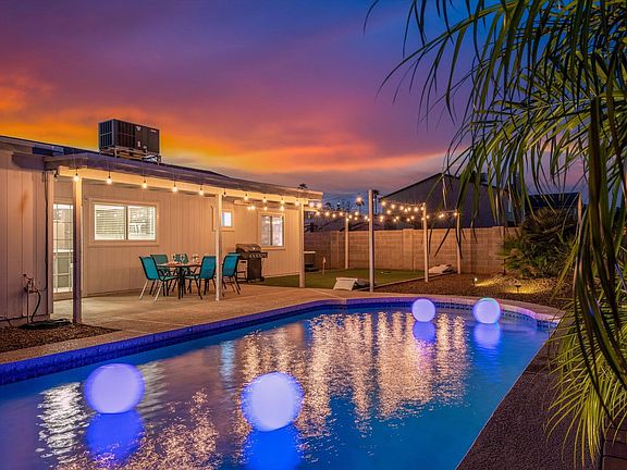 This 4-bedroom house in Chandler, Arizona, offers everything you need for an amazing vacation. With 5 beds and 2 baths, it comfortably sleeps 14 guests. The property features parking for 4 cars, a fully stocked kitchen, and a private pool. Enjoy the outdoor patio, dining area, hot tub, BBQ grill, and various games like dart board and shuffle board table. The house is family-friendly with amenities like a Pack n Play and high chair. Nestled in a quiet neighborhood, this luxurious and spacious home offers the perfect blend of modern comfort and resort-style amenities. With 4 bedrooms and 2 bathrooms, it provides ample space for up to 14 guests to relax and unwind. The chef's kitchen is fully stocked with high-end stainless appliances, a large fridge, and coffee makers. The living room features a 65" smart TV and large plush sofas, while the spectacular resort-style backyard includes a private pool, hot tub, and outdoor dining area. Up to 2 dogs are allowed for $125 per stay, but no cats please. Parking is available in the driveway for a maximum of 4 cars, and street parking is also available. Conveniently located, this home offers easy access to nearby attractions, shopping, and dining options in Chandler, Arizona. Whether you're looking to explore the natural beauty of the area or simply relax and enjoy the amenities, this home is the perfect base for your next vacation. Uber and Lyft are reliable modes of transportation in the area. Check-in is at 4 pm and check-out is at 10 am. The minimum age required to book is 25 years old. The pool is not heated, but it is generally warm enough to swim in from June to September. No parties or events are allowed at this property, and any gatherings will result in a minimum fine of $2,000 and immediate check-out with no refund. There are 2 cameras on the property for security purposes. The garage is not available to guests. Quiet hours are between 10:00 pm and 7:00 am. A laptop computer is not included.