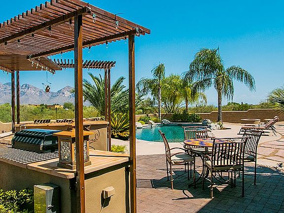 It seems like a resort but it's your home! Custom home with INCREDIBLE unobstructed views of the Catalina Mountains and twinkling city lights. Over 3 acres of land, guest casita with family room, kitchenette & Bdrm. Home has granite slab counters in kitchen, warming drawer, Dacor appliances, butler's area, nook and sit-up bar. Office with separate entrance, pool, spa with outdoor kitchen & BBQ, huge patios w/several sitting areas and fire pit perfect for relaxing outdoors or entertaining guests. Central wet/dry vac, 3 car garage w/storage and built ins, 3 HVAC, 2 large pantries and laundry room.