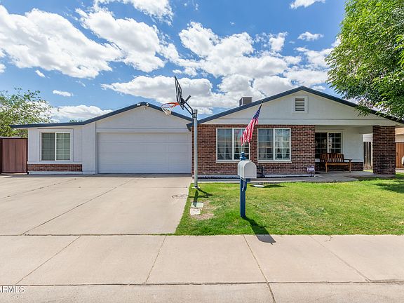 Outstanding 5 bedroom 3 Bath highly upgraded home in College Park Subdivision. New Exterior paint. Wonderful Charming floor plan with formal living room plus a family room, Upgraded Kitchen, granite counters, bedrooms, bathrooms. Tiled throughout with wood like flooring, Kitchen features a breakfast bar with pendant lighting, stainless steel appliances, pantry, lots of cabinetry and nice views to the backyard with a refinished pebble tec pool w/ new filter in 12/18. Inside laundry close to large bedrooms for convenience. 2 New AC units 8/2022 and New roof 1/2019. Lush green grass in the backyard with an extended stone patio with an oversize gate. Low maintenance front yard. Conveniently located just minutes off the 101 and the US 60! Definitely a great place to call home.