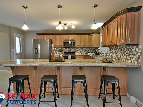 Unique, one-of-a-kind acreage situated on just over 5 acres and boasts over 5000 square feet of finish. This 5 bed, 4.25 bath, completely remodeled home is everything you've been looking for! This home features a stamped concrete courtyard in the center of the home, accessible from 3 interior patio doors, and includes rough-in for a propane fire pit. The kitchen kitchen/living room area features brand new slate matte appliances, stunning granite counter tops, and a gas log fireplace. The luxurious master suite features a sizable master bathroom area with dual sinks, huge walk-in closet, and a sauna! The home also includes 2 separate finished basements, 3 car attached garage, and a 2 stall detached garage. Call today for a private showing!