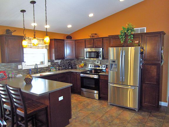 Incredible 4-bedroom, 3-bath custom-built home with over 3,000 beautifully finished sq ft of living space. Very spacious & open split-bedroom floor plan with gorgeous kitchen, breakfast bar, Corian counter tops & stainless steel appliances. Spacious Great Room with beautiful gas fireplace, hand-scraped wood floors & cathedral ceilings. Large master suite has trey ceiling, walk-in closet & impressive bath with custom tiled walk-in shower. Convenient main floor laundry-mud room and a beautifully finished lower level with 9-foot ceilings, large bedroom & full bathroom.