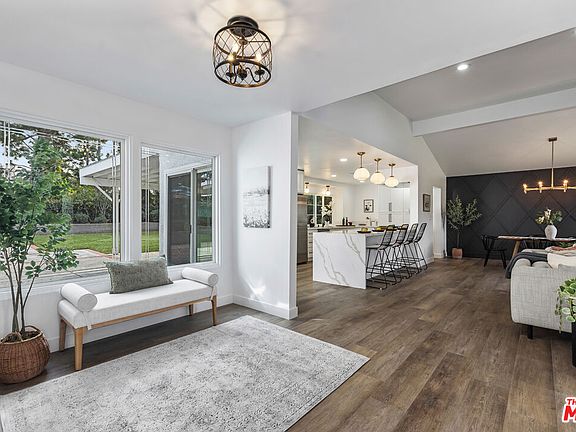 Situated on a cul-de-sac, this light and bright two-story home boasts 5 bedrooms, 4 bathrooms, and nearly 2,700 square feet of living space on an expansive 10,780 square foot lot. Fully remodeled from head-to-toe, the home offers a spacious open floor plan perfect for a family or those looking to entertain. At the heart of the home is a beautifully finished open-concept living area that seamlessly blends both the kitchen and dining area. Tastefully designed, the kitchen features brand new stainless steel appliances, marble countertops, custom cabinetry, extra bar-top seating, and access to the backyard via sliding glass doors. The first floor also includes a laundry room, two bedrooms and two bathrooms, one of which is en-suite. Upstairs, you'll find two large bedrooms, a full bathroom, and the primary suite. The primary is complete with a private balcony, walk-in closet, and en-suite bathroom that features a dual vanity, stand-in shower, and tub. Outside, enjoy an amazing backyard with plenty of space to dine, entertain and lounge. Inviting yet private, the space features a large covered patio area, in-ground jacuzzi, putting green, and half-basketball court. Ideally located, the property is just minutes to nearby schools, parks, local shopping, dining, & entertainment.