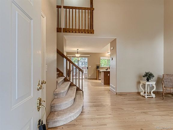 Welcome home to this charming well maintained 4 bedroom 3- bath home in the highly desired family-oriented Clarke Farms subdivision. The open floor plan offers a vaulted ceiling and large bay window upon entry. The well designed spacious eat-in kitchen overlooks the family room and boasts oak cabinets, tile countertops, stainless steel appliances, updated sink, fixtures and lighting. The family room which is wired for surround sound has a gas log fireplace surrounded by a beautiful brick mantel. The main floor laundry room includes a high efficiency washer/dryer and an updated powder room. Upstairs, the large primary suite has a walk-in closet. The primary bathroom has been recently updated with new shower, double sinks, toilet, fixtures and lighting. There are three additional bedrooms upstairs and a full bathroom with updated sink, fixtures and lighting. The partially finished garden level basement may be used as an office, workout room, playroom or bedroom with a large separate storage area. Hardwood floors were recently refinished and all carpets professionally cleaned. Additional upgrades include windows, blinds, paint, insulation, Carrier Furnace and Air Conditioner along with gas water heater. Exterior is completely fenced and landscaped with turf, plants and rocks. This home is south facing to help with winter snow melt and provide plenty of natural lighting. The home is walking distance to Cherokee Trail Elementary and American Academy Kindie Prep, Clarke Farms quiet family neighborhood offers fully developed landscaping, parks, walking trails, pool and tennis course. Easy access to RTD stops, downtown Parker, E-470 and I-25.
