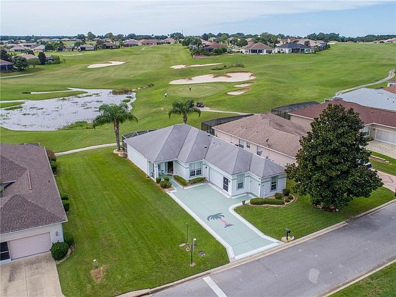 STONECREST 55+ GATED GOLF COURSE COMMUNITY WITH ALL THE AMENITIES, 4 POOLS, SOFTBALL (MEN AND WOMEN), 24 HOUR MANNED SECURITY, 2 MILES FROM THE VILLAGES BY GOLF CART AS THIS IS A GOLF CART COMMUNITY. LOVELY GOLF COURSE HOME OVERLOOKING MAJESTIC FAIRWAYS! KINGSLEY MODEL WITH GOLF CART GARAGE, 10 FOOT CEILINGS THROUGH OUT, LONG DRIVEWAY (PERFECT FOR RV OR MULTIPLE GUESTS), STORAGE IN GARAGE, TILE THROUGH OUT THE MAIN HOME WITH CARPET IN THE BEDROOMS, 2 BEDROOM PLUS DEN WITH FRENCH DOORS, BAY WINDOWS IN MASTER BEDROOM AND BREAKFAST NOOK, TRIPLE SLIDERS OFF LIVING ROOM TO EXTENDED LANAI WITH BIRD CAGE, HOT TUB (AS IS, HOWEVER MAINTAINED BY T&D POOLS), THE ASSOCIATION FEE IS 112.OO PER MONTH, THE MASTER CLOSET IS HUGE AND HAS BUILT INS! MASTER BATHROOM HAS BEEN UPDATE SINCE THE PICTURES WERE TAKEN! BOSE SPEAKER SYSTEM IN THE HOME (AS IS) AND IS IDEAL FOR ENTERTAINING. THE VIEW IS SPECTACULAR FROM ALL MAJOR ROOMS. NORTH/SOUTH LOCATION. PACKAGE OF 4000 GOES TOWARDS NEW APPLIANCES. HURRY AND DO NOT LET THIS BEAUTY GET AWAY!