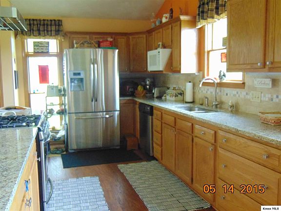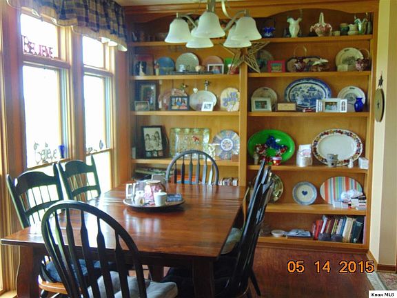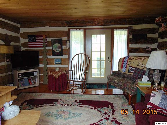 Uniquely yours! Wonderful home that has been built around a log home built in 1834. Family room and living room have exposed logs with chinking. Beautiful updated oak cabinet filled kitchen with granite countertops, gas convection oven and stainless steel refrigerator. Attractive adjacent eating area with built in display shelving. Both baths have been updated. Large master bedroom on main level with bath. 2 bedrooms up with landing room that could be used as an office or 4th bedroom. Maintenance free exterior, 200 amp electric, well insulated and exceptionally clean basement. Scenic views from this property which is located at the 2nd highest point in Knox County. Beautiful flower beds and patio perfect for summer barbeques. 2 barns on the property that need some work. This is a great home.