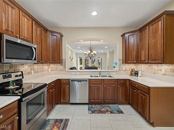 Well maintained 3 bedroom 2 bath 2 car garage villa in much desired Colony Lakes! Home comes with a full appliance package including washer & dryer. A/C is 3 years old and comes with UV protection to prevent mold. Eat in kitchen comes with 42" wood cabinets, Corian counters, tumbled marble backsplash, under cabinet lighting and seating at the breakfast bar. The spacious dining living area is perfect for entertaining or family get togethers. The living room comes with surround speakers too! Primary bed and bath have 2 large walk in closets, tiled shower, dual sinks and separate commode room . Windows are protected by accordion storm shutters and electric storm panel covers the lanai. The extended lanai has french doors leading into the home and also has new screening. Community has a heated pool, exercise room, and clubhouse. Location is very convenient to shopping, restaurants, entertainment, medical facilities, and beaches. Airport and I-75 is a short drive. Remember to view the video. It will show how nice Colony Lakes is. HOME COMES TURNKEY. BRING YOUR TOOTHBRUSH AND MOVE IN.
