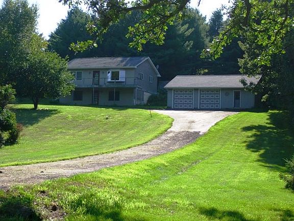 Raised Ranch on 3 Acres. Partial finished Master bath & closet. Familyroom on main level. 6' X 40' front deck. Tiled floor in main bath w/ Jacuzzi tub. Laminate flooring in living room. Beautiful oak floor in 2nd bedroom. Lennox Furnace & Central Air. Some windows & flooring need replacing. Shingles on home may need replacing. Concrete Block two car garage w/vinyl siding, has separate 12' X 26' heated workshop & separate entrance. Deck is not code. Small storage shed. Home needs a little TLC but is livable. Seller is talking w/ Lender about possible "short sale".
